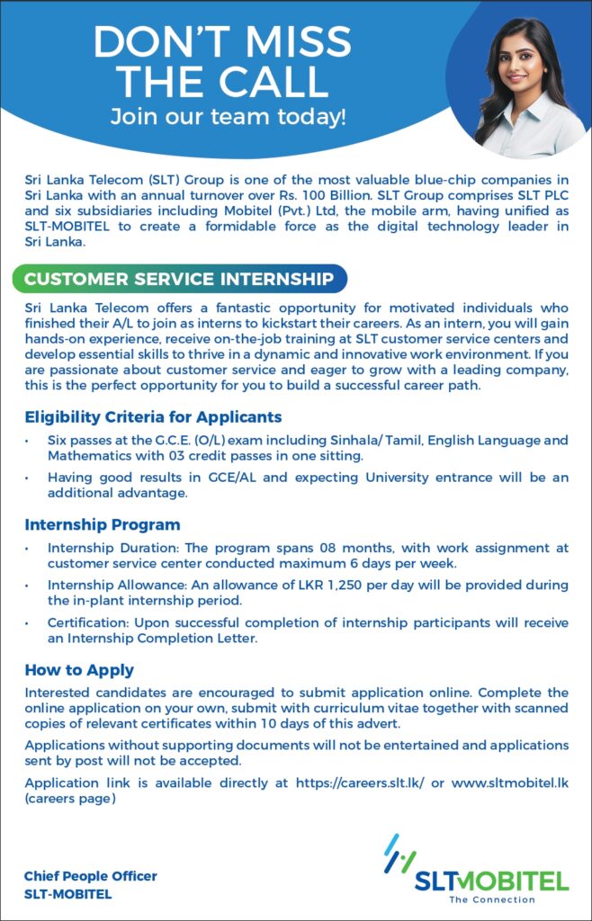 Customer Service Internship – Sri Lanka Telecom (SLT) Job Vacancies 2025